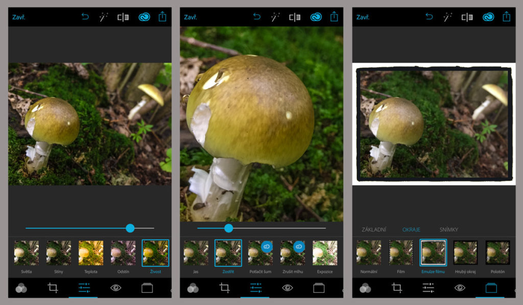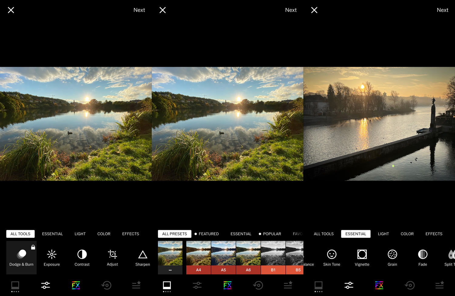 Aplikace Fotograf má pěkné filtry a základní úpravy jednoduše dostupné. Je od stejných vývojářů jako CameraBag na desktop, který mám rád pro svoji jednoduchost. Jinak na tabletu mobilu nejčastěji používám klasiku Snapseed na úpravy a VSCO na filtry.