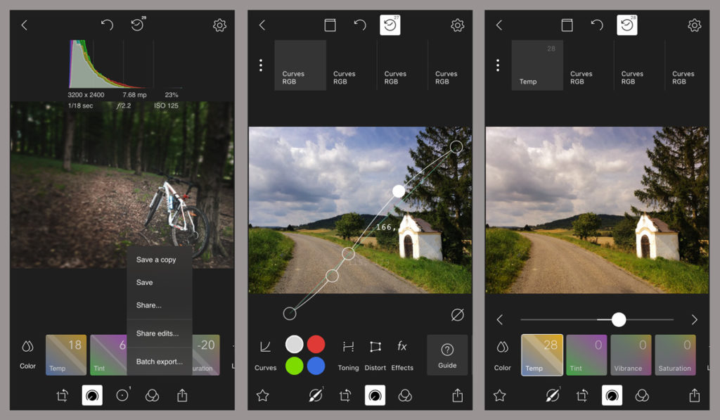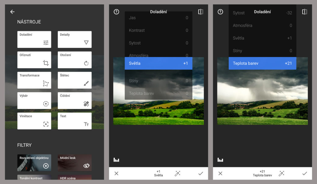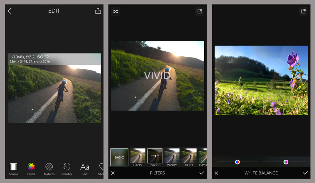 Nabízí skoro vše, od filtrů po pokročilé úpravy. V tom, co umí, je určitě srovnatelný se Snapseedem i Polarrem, byť ten mi pořád přijde lépe nasměrovaný na praktické využití.