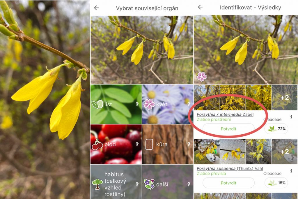Jak to celé funguje? Tak jednoduše, že je vlastně skoro zbytečné to nějak zvlášť popisovat. Stačí aplikaci stáhnout, udělit potřebná povolení a pak už jen pořídit fotku. V druhém kroku aplikace požádá o upřesnění, co zhruba na fotce je: zda list, květ, plod nebo kůra.