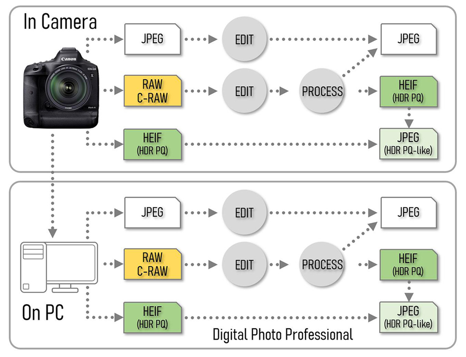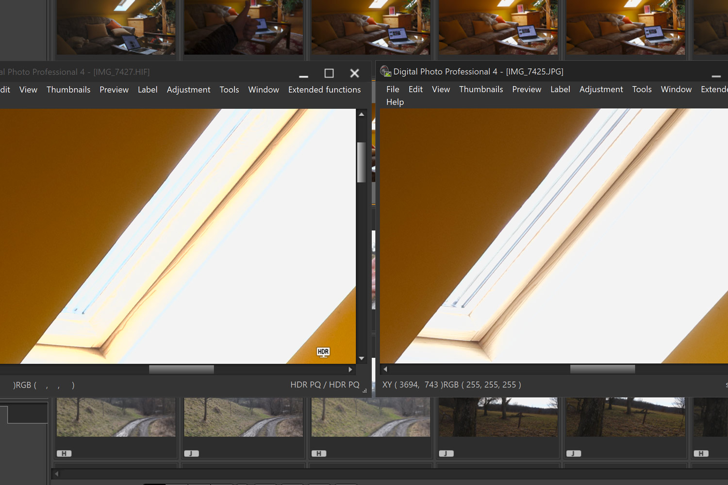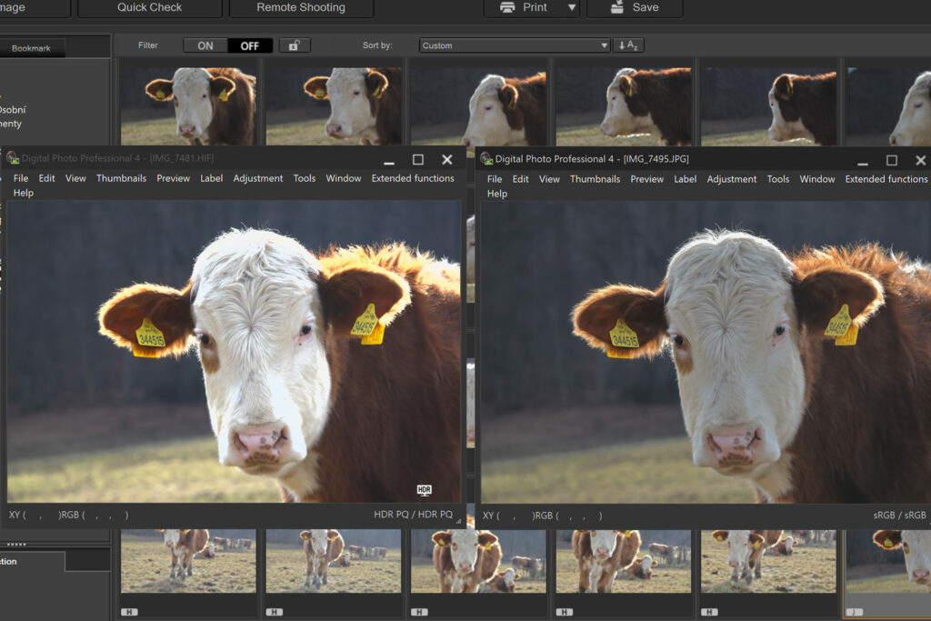 – velmi zajímavě je možné experimentovat s fotkami v HDR PQ i v počítačích bez HDR monitorů – pokud fotky otevřete v programu Digital Photo Professional, rychle zahlédnete, že pracuje se zcela jinou úrovní kvality dat