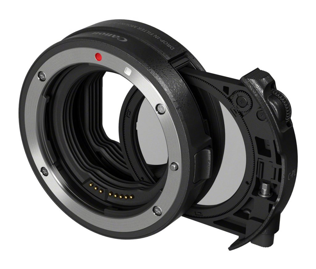 Tři nově představené adaptéry umožňují více než 70 modelům objektivů EF a EF-S využívat inovativního systému EOS R, který podpoří nové možnosti optiky při zachování vysoké kvality obrazu a vysokého výkonu, jaký lze vidět při užívání s EOS zrcadlovkami. Tento adaptér přináší uživateli možnost ovládacího prstence, který se nachází na RF objektivech. Drop-in filter adaptér umožňuje použití širokého spektra drop-in filtrů (Drop-in polarizační filtr a Drop-in variabilní ND filtr). Je to ideální řešení pro filmaře využívající objektivy, ke kterým je složité nebo nemožné filtr přidat. Drop-in variabilní ND filtr řídí expozici, přičemž polarizační cirkulární filtr eliminuje odrazy a vylepšuje barevnou saturaci. Oba filtry jsou ideální pro ohromující kvalitu obrazu, která pohání potřeby uživatelů.