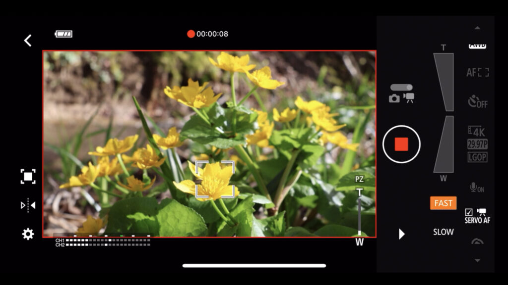 Ovládání přes mobilní aplikaci je návykové – osobně mi hodně vyhovovala možnost ovládat Canon R50 V přes mobilní aplikaci Canon Camera Connect. Nejde přitom jen o základní propojení, ale o poměrně široké možnosti nastavování. Pro má videa je zásadní, abych si dokázal na dálku několika metrů dokonale nastavit sám sebe do záběru. Což jde přes mobil mnohem lépe než třeba přes otočený displej. Dlužno říct, že pochvalu zaslouží prostý fakt, že aplikace funguje opravdu spolehlivě a vždy se mi podařilo připojit se na první pokus. A to dokonce i mimo domácí wi-fi v kopcích Valašska. Plus stejně tak se ovládání přes displej mobilu hodí v těch situacích, kdy jsem – například – točil květiny u potoka v úrovni země. A kontrolovat vše přes displej foťáku by bylo složité až nemožné.
