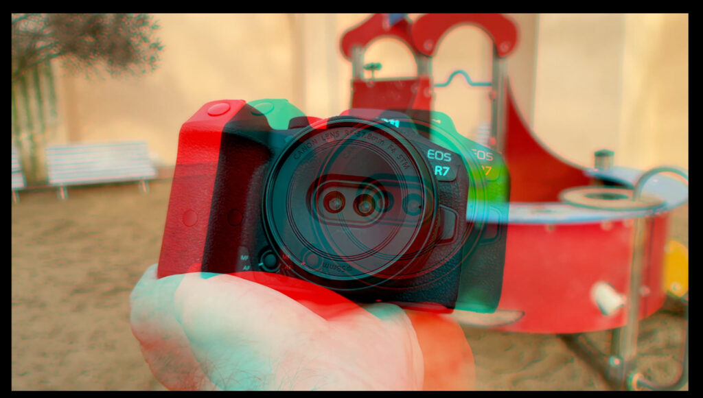 A pokud se nepletu, Canon (tedy Canon R7 a zmíněný objektiv) je nyní jediné zařízení, které dokáže mimo svět Applu natáčet prostorová videa, což je samo o sobě zajímavé. Více zahlédnete ve videu, které jsem o tom všem natočil, ale v jedné větě řečeno: jediný, byť dost zásadní, rozdíl je ve formátu. Z iPhonů můžeme získat normálně širokoúhlý záznam, záběry z Canonu jsou ve čtvercovém formátu.