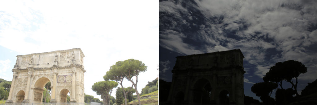Problém je, že žádný fotoaparát na světě tento velký rozdíl mezi světlem a stínem nedokáže zachytit. Však to dobře známe: pokud budete někoho fotit proti oknu, buď bude jen černou siluetou (a bude vidět scéna za oknem), nebo bude vidět dobře on, ale vše venku již bude zcela „přesvícené“ – či přesněji, nebude tam nic.