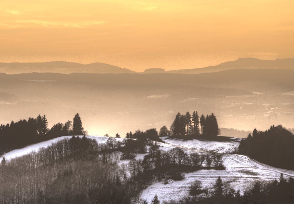 Podívejte se na ukázkový obrázek – je ze západu slunce nad Valašskem. Naše oči na chvíli fascinovaně hledí na oranžovou záři na horizontu, a pak na černobílé kontury zasněženého lesa.