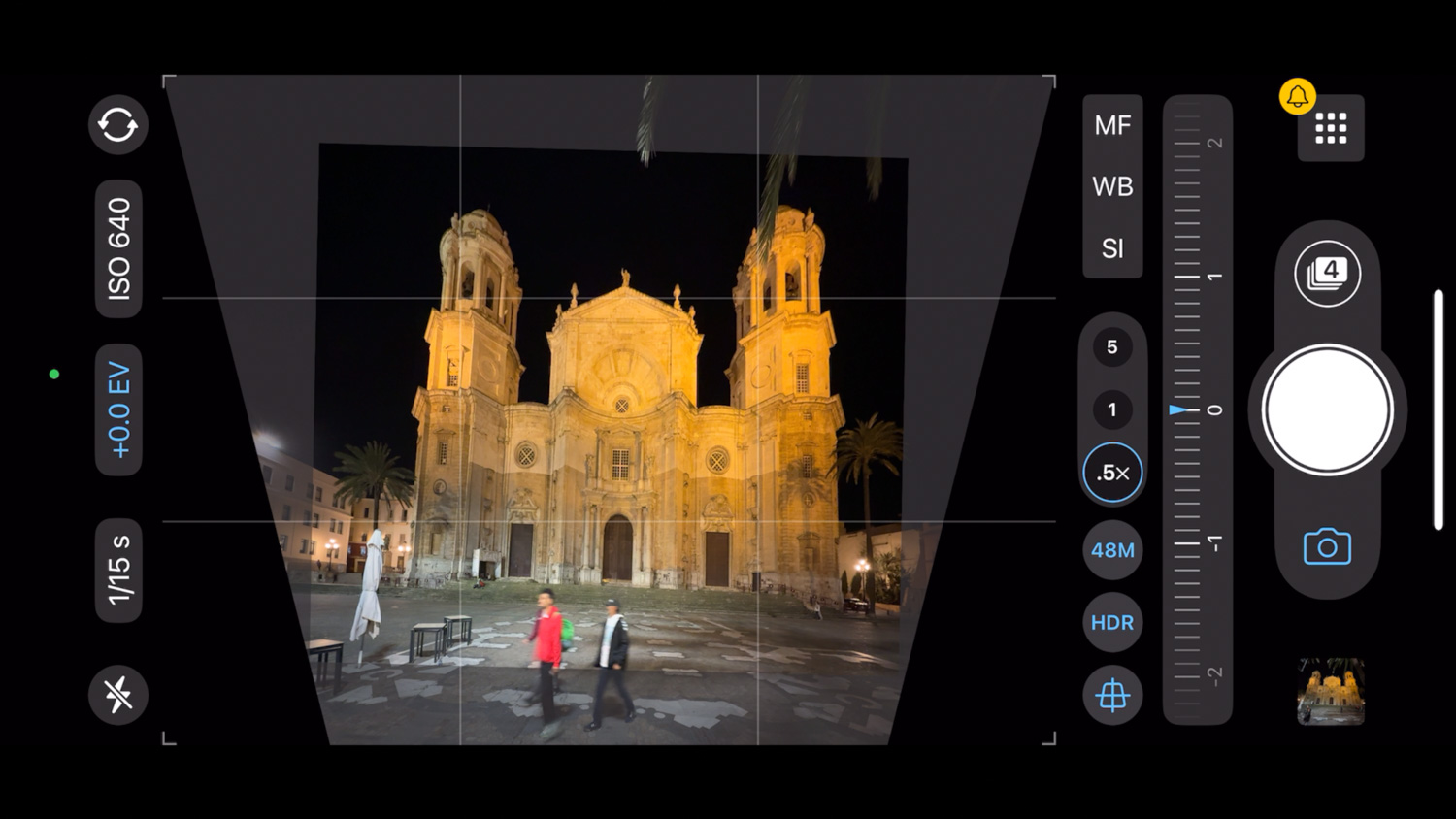 Za zkratkou APC (aktivuje se v nastavení, případně v hlavní nabídce ovládání) se skrývá funkce automatické korekce perspektivy, tedy jiným slovy úpravy “padajících svislic”. Což je problém, který každý dobře zná: stačí se postavit před budovu a vyfotit cokoliv čnící do nebe. Fyzika je fyzika a svislice prostě svislé nebudou. ProCamera to umí zařídit automaticky tak, že uživatelům vlastně nic “padajícího” vyfotit nedovolí – vše automaticky v reálném čase opraví.