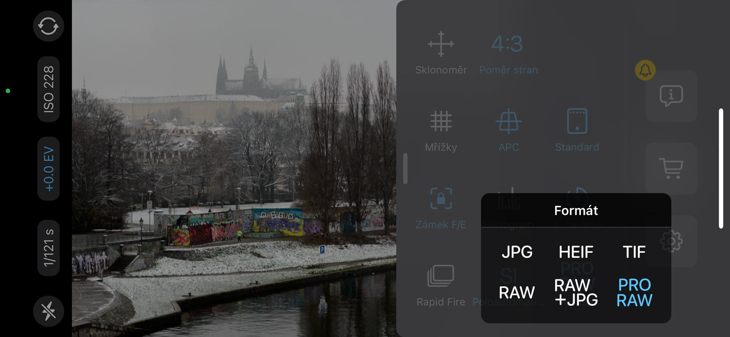 Jak: Focení do ProRAW umí Pro modely od iPhonu 12 dál. V nastavení (Fotoaparát/Formáty) je třeba ho aktivovat, volba se pak objeví přímo ve foťáku.