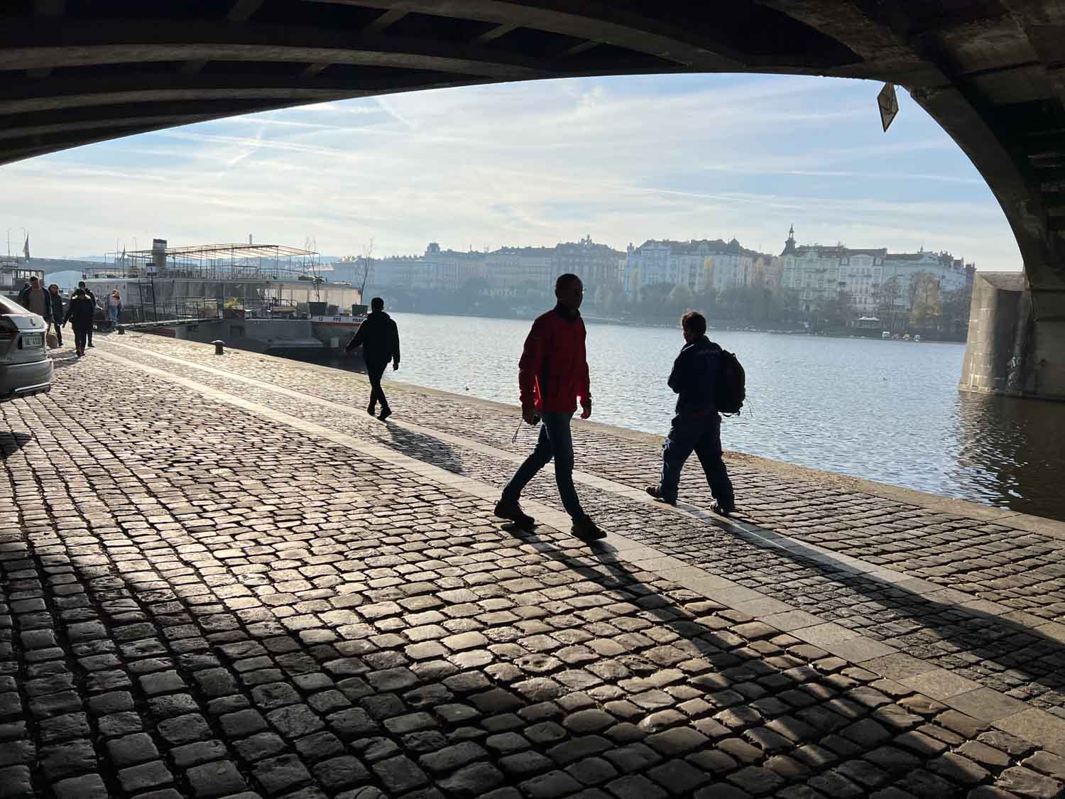 Tento most pod Tančícím domem v Praze je můj oblíbený „ateliér“ pro focení portrétů v přirozeném světle. A když hezky svítí slunce, vznikají tady i podobně zajímavé fotky plné světel a stínů. A funguje zde stejná „rámování“ jako u obrazů starých mistrů (viz dále).