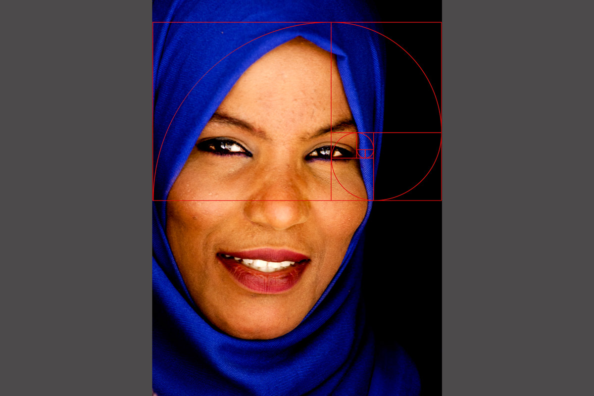 Dokonalé přirozené světlo – u téhle dámy z Libye jsem číhal, až bude vycházet z temné místnosti do zádveří, kam dopadalo jemné intenzivní světlo. Foceno pořádným foťákem. Plus ukázka toho, že proporce zlatého řezu je možné nacpat ledaskam…