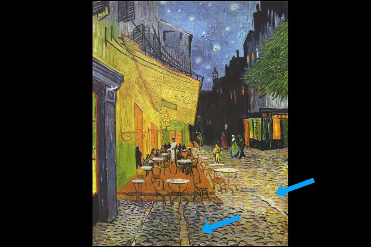 Co myslíte, jsou zásadní jsou ty linie? Opravdu hodně! Fotka to sice není, ale funguje to zcela identicky jako na obrazech. Vincent van Gogh: Kavárna s terasou