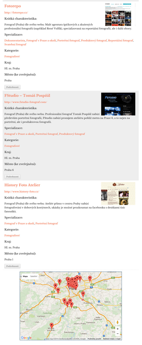 Pokud se dáte do hledání, na první pohled to bude vypadat hodně nadějně – Google dokonce nabízí při zadání “fotograf Praha” speciální formát zobrazení výsledků, kdy ukáže krásnou mapu a (dle toho, z jaké části Prahy hledáte) i hezké body na mapě…