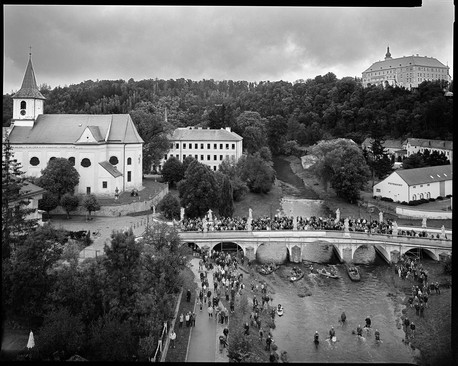 Tohle je výsledná fotka Náměstě nad Oslavou a jejích stovek občanů, Roman Franc ji pořídil velkoformátovým fotoaparátem. Finální velikost snímku je 4 na 3 metry. Autor: Roman Franc – publikováno s jeho svolením.