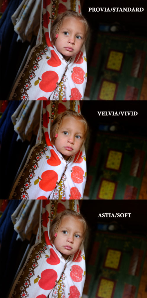 Při focení do JPG tak máte možnost použít přednastavené “filtry” kopírující opravdu věrohodně ony dávné názvy slavných diákových materiálů: Provia jako základ, Velvia jako symbol jasných až zářivých “Fuji-barev” a Astia jako jemný materiál skvěle trefující pleťové tóny… Případně i zkušenými borci vychvalovaný Classic Chrome.