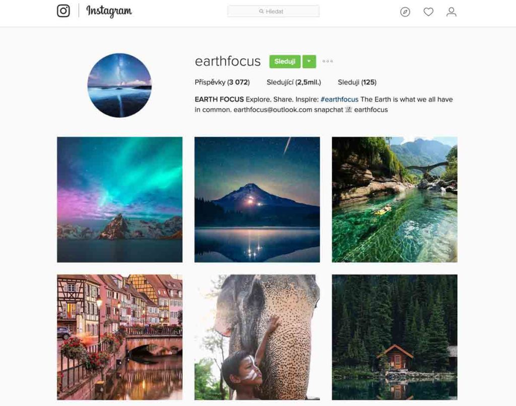 Příklad velkého „hubu“, tedy virtuální galerie, do níž přes hashtag #earthfocus můžete zkusit poslat své fotky. Buď je někdo vybere, nebo ne… Ale pokud ano, „diváků“ tu je 2,5 milionů… Link zde.