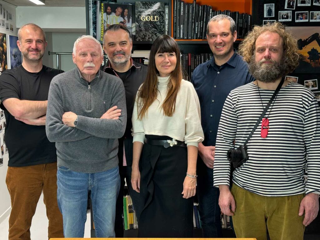 soutěže Cestovatelská fotka roku. Kamarád fotograf nás cvakl mým iPhonem 15 Pro a nic moc neřešil, „protože on to ten iPhone nějak zařídí“. A zařídil. Porota zprava doleva: Štěpán Hon, známý fotograf, Petr Řeřábek, ředitel Cewe, Veronika Souralová, šéfka Czech Photo, Tomáš Tureček, šéfredaktor National Geographic Česko, Petr Brukner, fotograf a herec, plus já, Jan Rybář.
