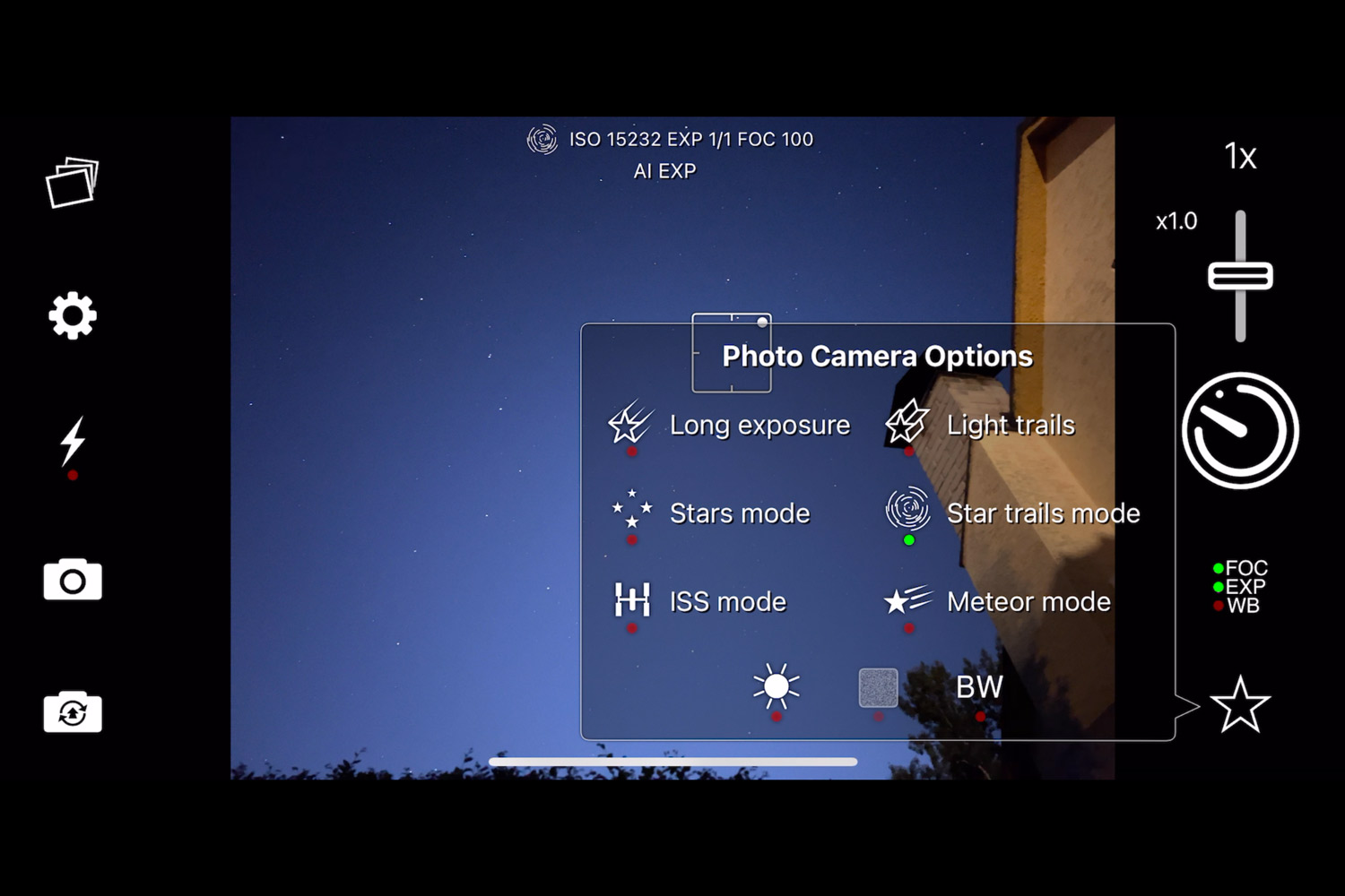 Potřebujeme aplikaci: variant je více, v budoucnu ještě snad sepíšu návody i k pokročilejším variantám, jak v mobilu pracovat s pohybem hvězd. Pro začátek ale zcela stačí aplikace NightCap Camera. V danou chvíli stojí 79 Kč, což je cena více než rozumná. Umí toho ještě mnohem více než zaznamenávat hvězdné dráhy, ale nás dnes bude zajímat právě jen mód Star Trails Mode. Link na aplikaci je zde.