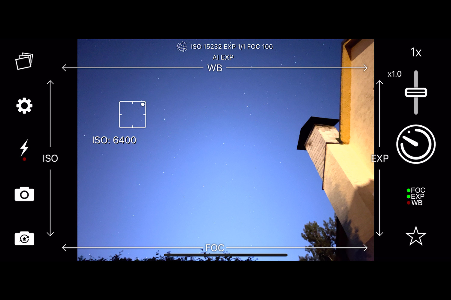 - Poznámka pro zkušené fotografy: nebojte se nastavit i opravdu vysoké hodnoty ISO, aplikace velmi dobře dokáže potlačit případný šum (přinejmenším na mém iPhonu 13 Pro). Anebo (což je též možné) jsou ty zobrazené hodnoty tak trochu mimo… Ale šumu se prostě nebojte