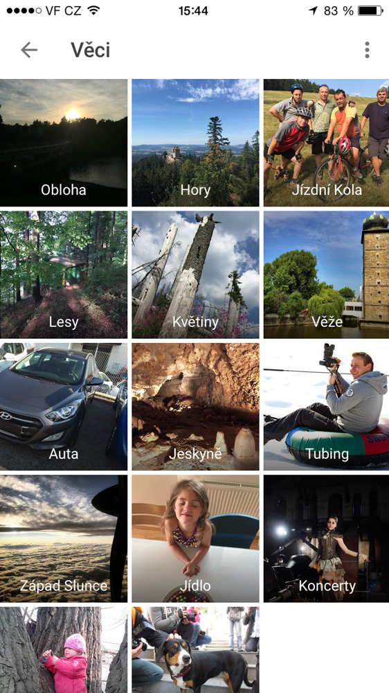 Ďábelské třídění: Jedna z vlastností Fotek, z níž jde trochu strach, je automatické třídění… Že Google dokáže třídit podle lokality, to nikoho nepřekvapí, ale že filtry dokáží s děsivou přesností fotky třídit podle témat, do je opravdu až trochu hororové – možná ani nevíte, že ta funkce tam je: prostě v přehledu fotek klikněte vpravo dole na symbol lupy (a hledání)… Ukáží se místa a “věci”, v mém případě tam zrovna teď mám kolekce Obloha, Jízdní kola, Lesy, Květiny, Věže, Auta… Kam toto půjde… Sluha to je každopádně dobrý, snad to nebude špatný pán.