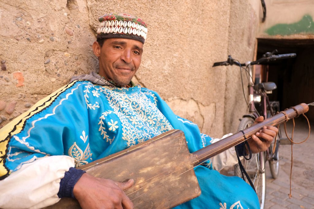 Těsně před odletem jsme se potulovali uličkami Marrákeše a zahlédli vcelku sympatického muzikanta – pokud jste tam byli (či kdekoliv jinde v turistických superměstech), tušíte, o čem mluvím. Mám kejklíře a muzikanty rád, ale v hlavních zónách je fotit opravdu nemá smysl. Ale tento byl v uličce tiché a klidné, navíc hrál hezky, tak jsme mu hodili pár drobných. A cvakli si ho – s vědomím, že na jeho stanovišti u zdi to prostě nemá moc smysl, že fotka bude plonková…