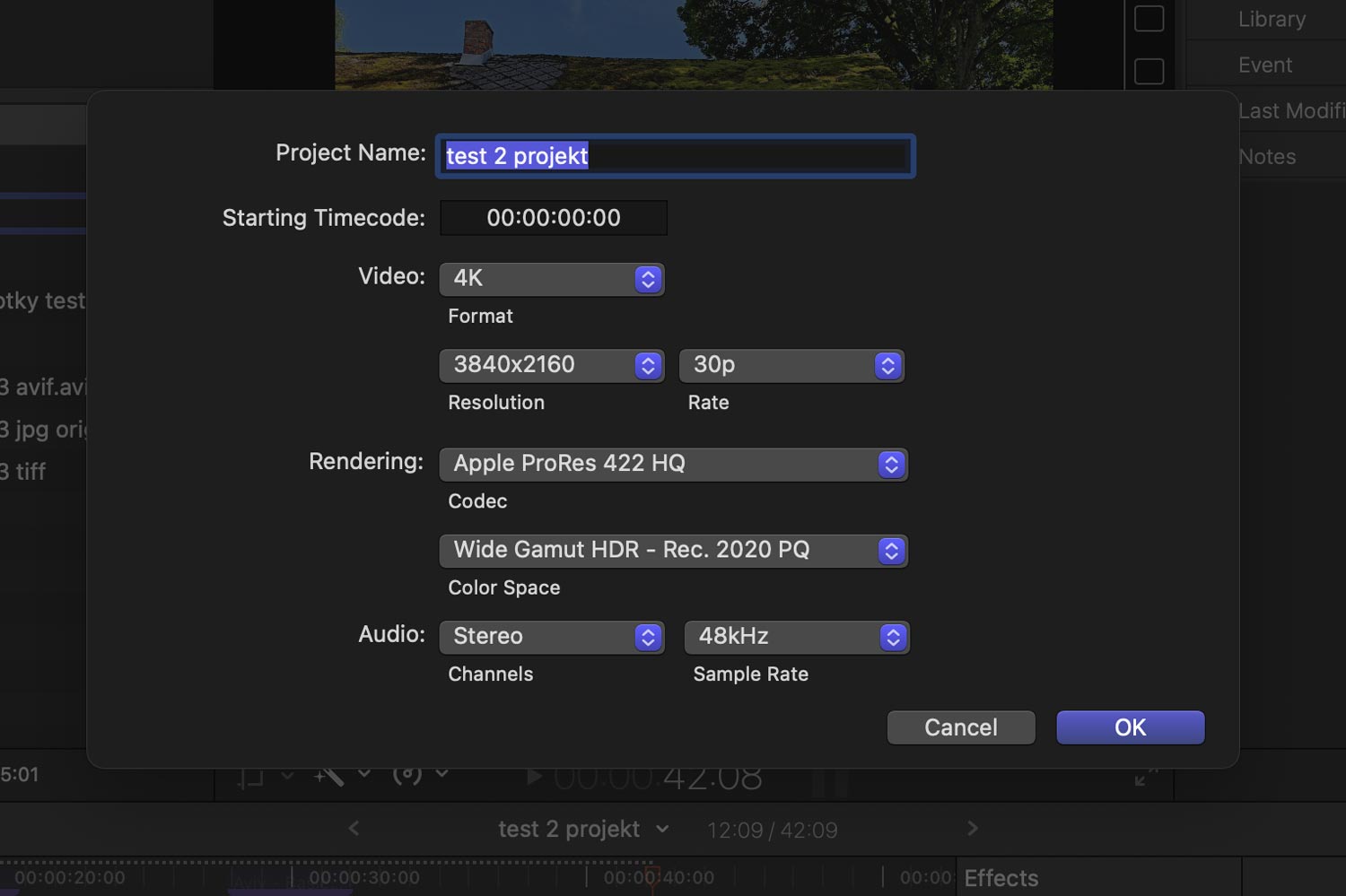 Střih videa vyžaduje speciální nastavení. Jeden z velkých limitů HDR videí jsem ještě nezmínil: je v podstatě nemožné stříhat v HDR přímo v mobilu (přičemž to “v podstatě” je jen můj alibismus, ono to asi nejde vůbec, přesněji řečeno nevím o aplikaci, která by to dokázala, ale mohu se mýlit). Střih HDR videa je tedy doménou profesionálních a poloprofesionálních programů – já používám na Macu Final Cut Pro, kde nastavuji knihovny a projekty na Wide Gamut.