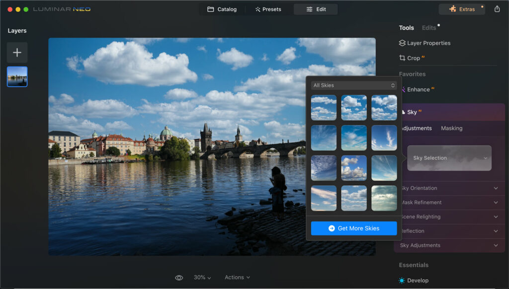 Luminar Neo má tedy dvě klíčové “vrstvy” toho, co umí. Jednu, která se více či méně shoduje se všemi podobnými editory, a i mírně zkušenější fotografové tak tyhle tradiční úpravy budou schopni používat poměrně rychle.