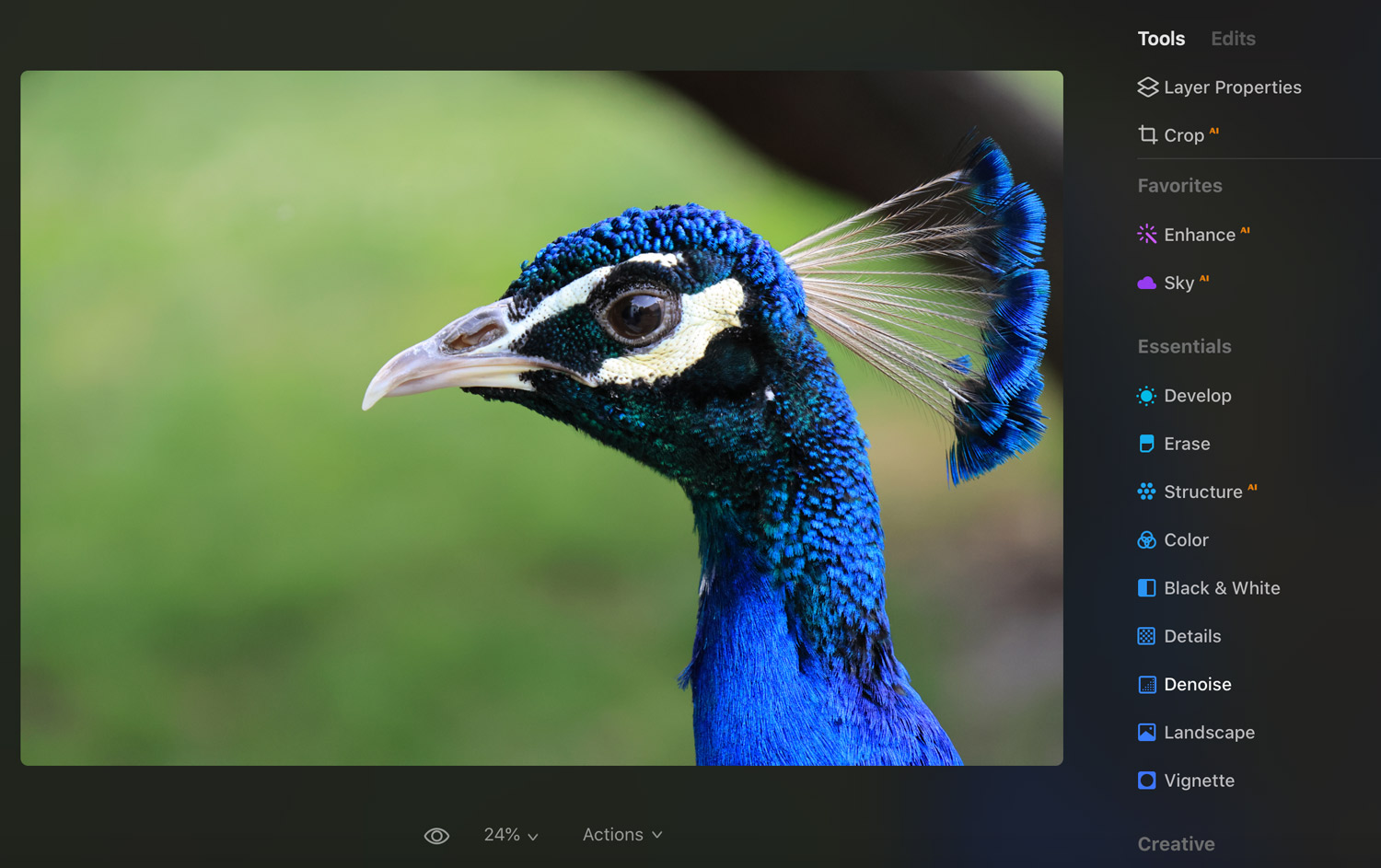 Stejně tak je důležité nenechat se při testování unášet jen těmi všemi AI kouzly a prozkoumat ony nudné Essentials, tedy základní úpravy. Já například zahlédl, že moje oblíbená funkce “Dehaze – Odstranit opar”, funguje trochu méně výrazně, než bych si přál.