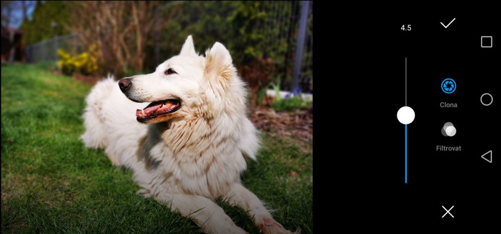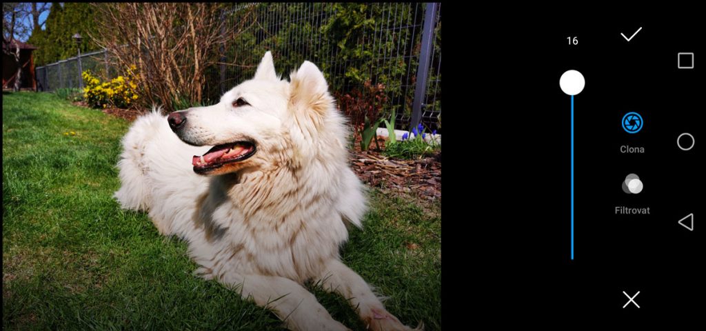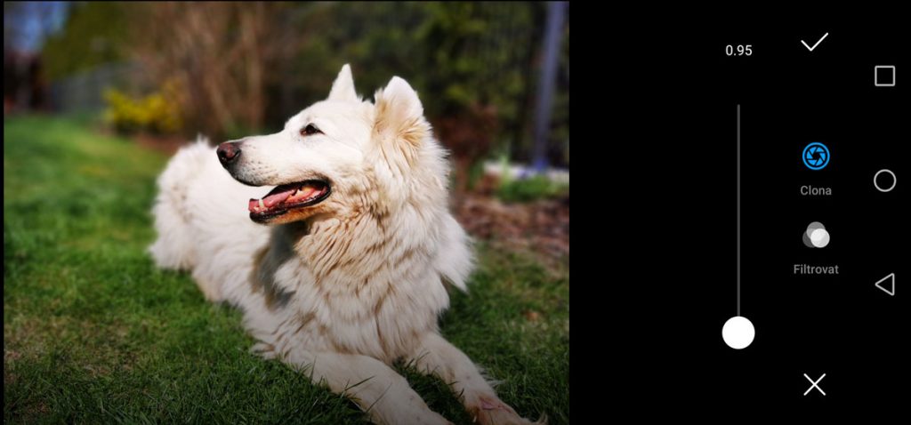 Ještě poznámka. Ten pes mne také vyděsil 🙂 Chápu, že fotka dokumentuje technickou úroveň telefonu, ovšem to rozmazání při „cloně“ 0.95 je přímo děsivé 🙂