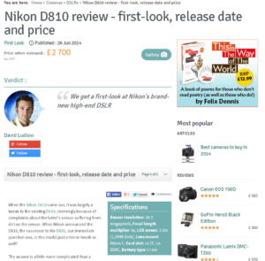 Představení tohoto nástupce slovutného Nikonu D800 bylo poměrně netypické – britský server Expertreviews vypustil dle Nikon Rumours na světlo světa „první dojmy“ z jeho používání výrazně dříve než měl. Článek rychle stáhl, ale i tak si fotografický svět rychle v textu uchovaném v cache Googlu s gustem četl o tom, co nový Nikon D810 přináší.