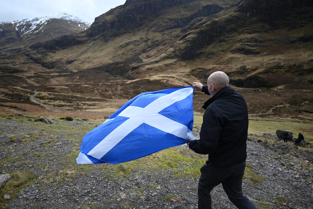 Pro focení na cestách je to prostě ideální parťák – zde náš průvodce Dougie pózuje se skotskou vlajkou. Neupravená fotka v plné velikosti.