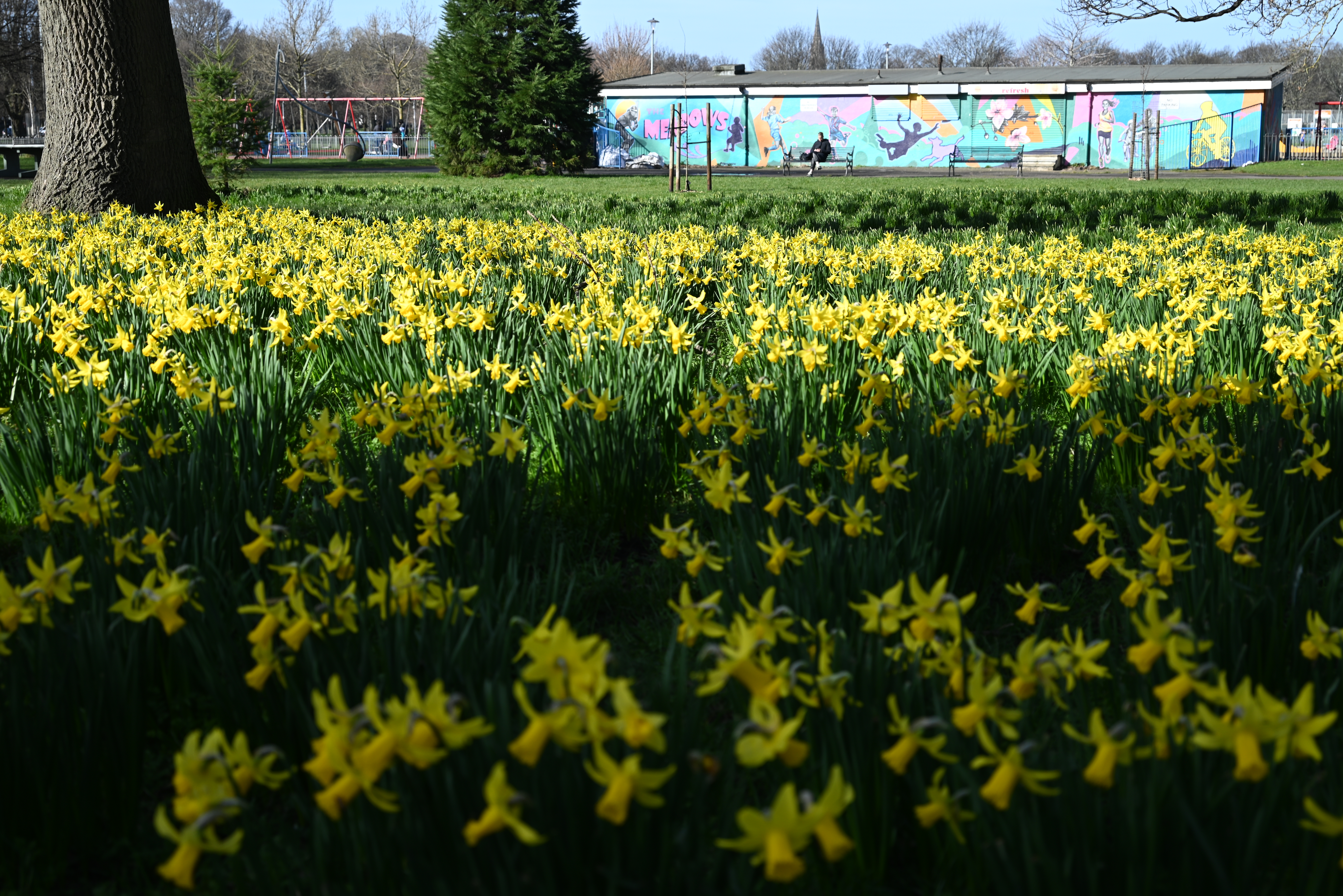Narcisy v plném květu aneb skotské parky jsou prostě krásné. Neupravená fotka v plné velikosti.