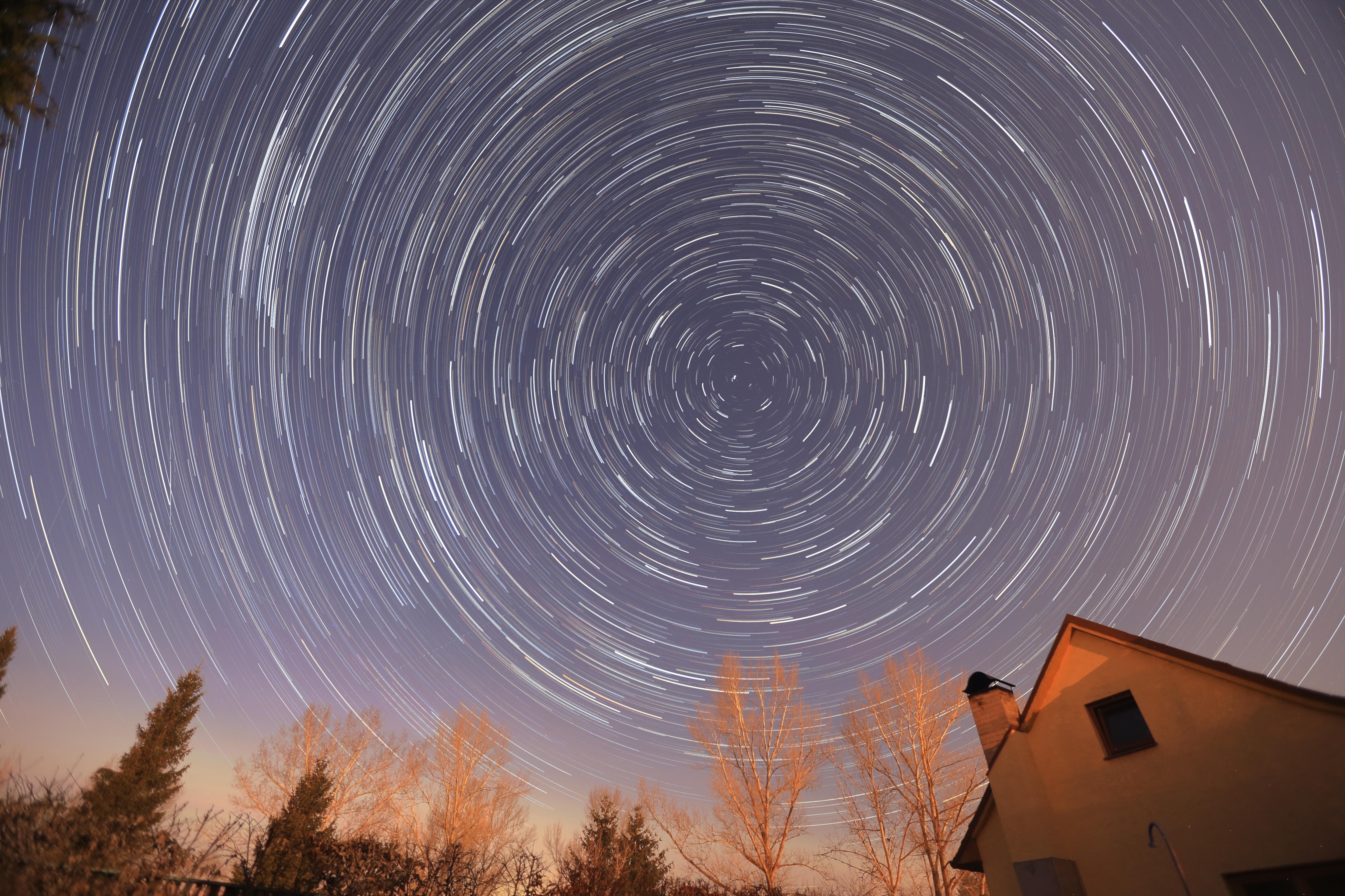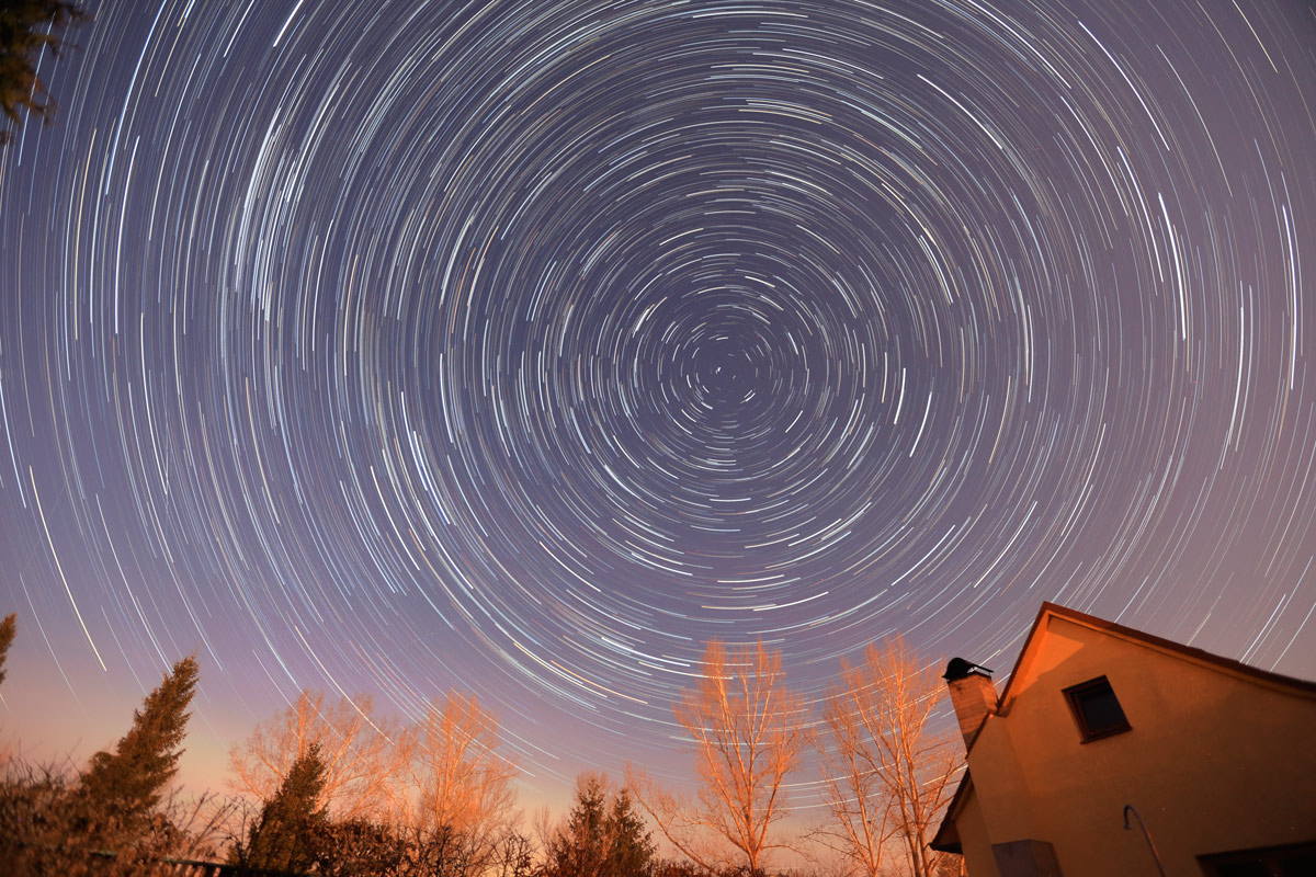 A hned pro začátek si řekněme, kde se berou ty kružnice – je to prosté, ve středu je Polárka, která se díky své severní poloze na snímku nepohne (přesněji: skoro nepohne, pokud byste mě chtěli brát za slovo).