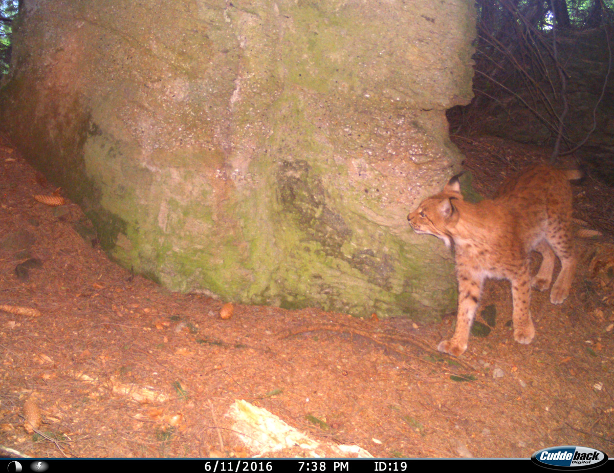Rys má opravdu dobrý vkus na úžasná místa – na vrcholku tohoto skalního hřbetu je několikametrová skála, kterou již několik generací rysů používá jako značkovací místo vymezující jejich teritorium.