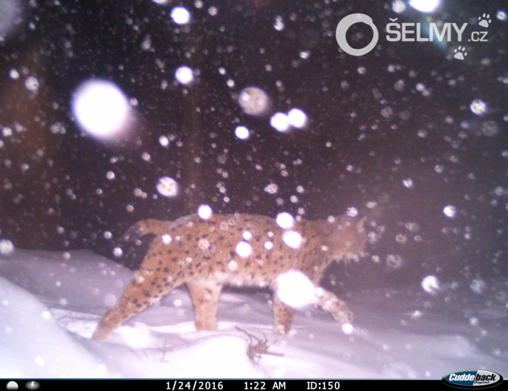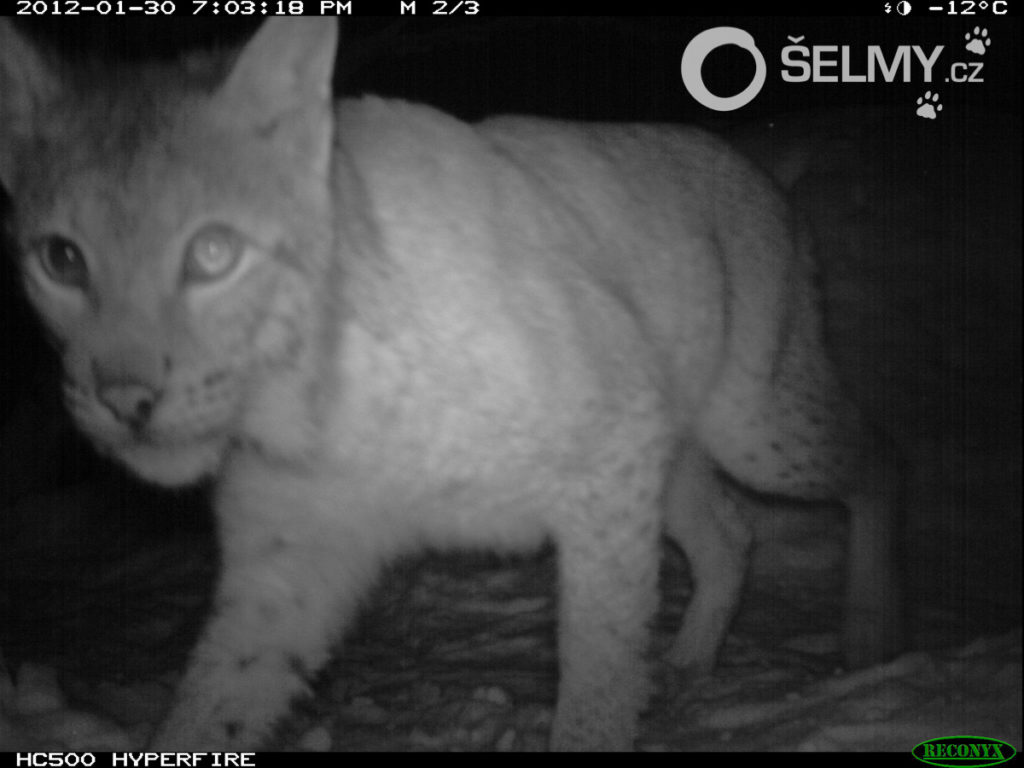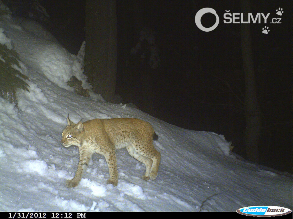 Druhou použitou fotopastí byl model Cuddeback C1, dle výrobce nejrychlejší fotopast na světě, kterou Míra používá s bílým, tedy pouhým okem viditelným bleskem, který ale prý zrovna rysům skoro vůbec nevadí. Tenhle model má čip o rozlišení 20 megapixelů, což už opravdu umožňuje pořízení velmi kvalitních fotek. Bohužel se mi nepodařilo dohledat ani na stránkách výrobce, jaká je velikost a parametry čipu, ale snad se dá bez této informace obejít. A kolik tato kategorie pastí, schopná pracovat i v mrazu, stojí? Kolem pěti až sedmi tisíc korun, což vlastně není zase tak moc (používat modely napojené na mobilní sítě nemá v tomto případně smysl).