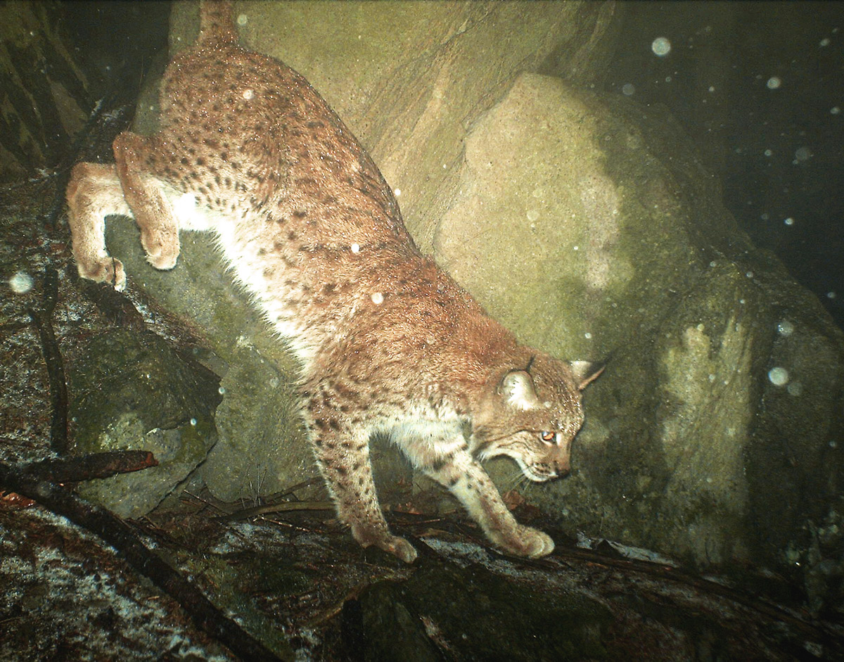“Kromě Licouse je na snímcích dvakrát i jiný, zhruba rok starý rys, který se na jaře osamostatnil. A je tam i pěkné video, jak zkoumá pachovou značku Licouse, zřejmě svého otce, který tam byl před ním. Řekl bych, že to je mladý samec,” napíše mi po pár dnech, když záznamy vyhodnotí.