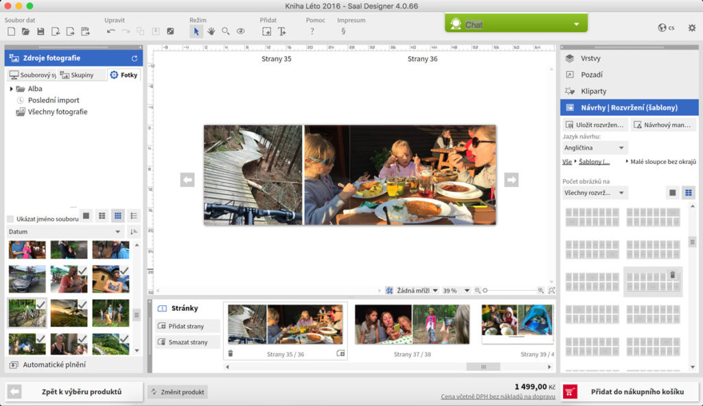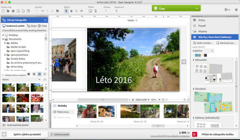 Obecně opět platí, že vše funguje dobře, byť ne vždy zcela hvězdně – jsem si jist, že výrazné zjednodušení a zpřehlednění softwaru by Saal Digital hodně prospělo, tady má určitě ve srovnání s CEWE co dohánět… Já jsem zvolil variantu, kdy jsem si sám chtěl postupně “lámat” stránky z dostupných šablon, a bylo to občas dost o nervy…