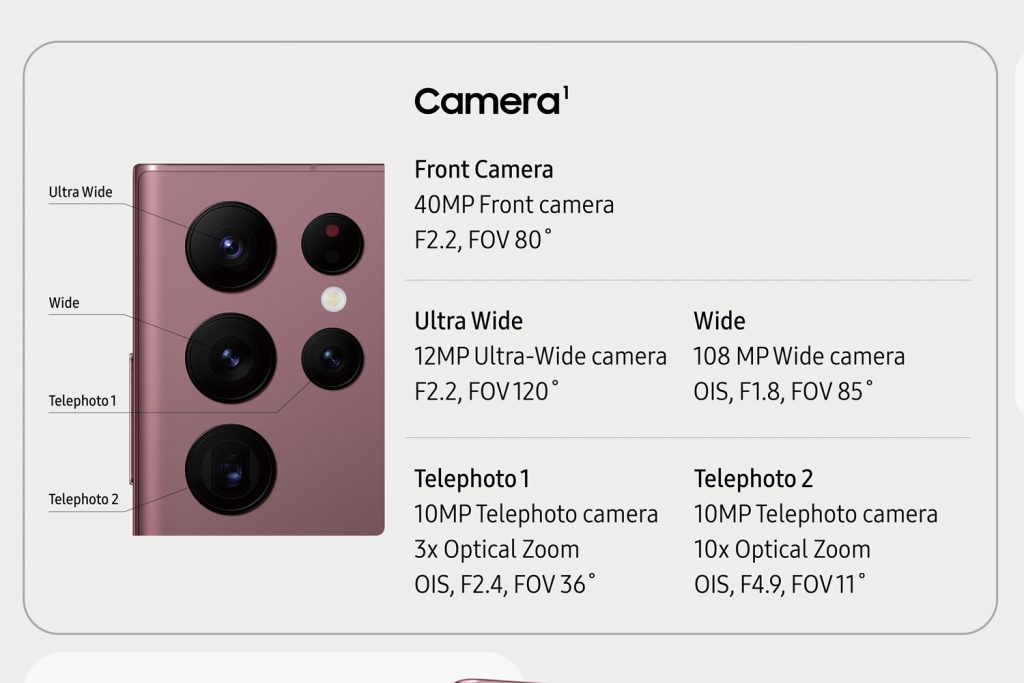 Samsung Galaxy S22 Ultra: čtyři objektivy