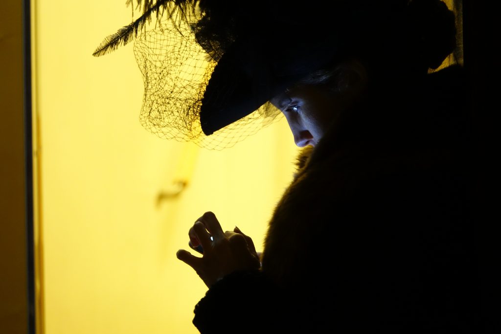Tuhle dámu v dobovém kostýmu čtoucí mobil jsem cvakl vlastně náhodou – a objektiv dokázal v té rychlosti ustabilizovat čas 1/10 vteřiny… Klobouk dolů… ISO bylo jen 1000, šum tedy skoro není patrný. Fotografie v původní velikosti bez úprav.