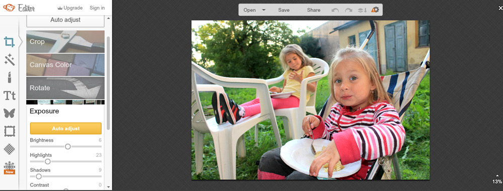 Pixlr byl dlouho na čele této tabulky – a svým způsobem by tam mohl být i nadále: tento program, resp. několik programů a aplikací, nabízí opravdu překvapivě mnoho funkcí, které i pokročilé fotografy překvapí svojí velmi slušnou funkčností… Kdo má zkušenosti s úpravou fotografií, dokáže ho užívat během několika minut.