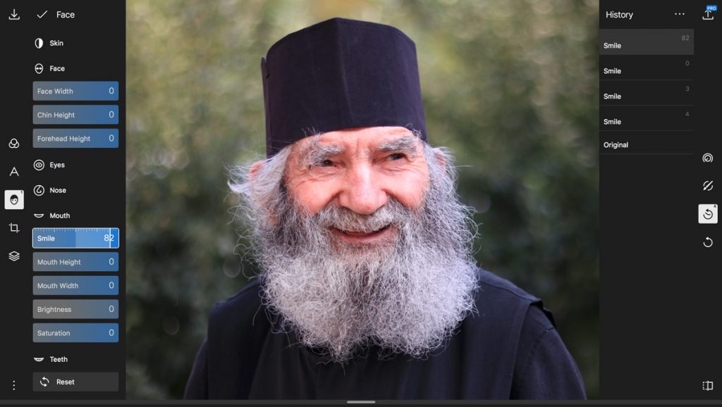 Jak jsem již zmínil, nyní umí i online verze oblíbené retuše obličejů – dokáže vyhladit vrásky, vybělit zuby, ba dokonce škarohlídům vykouzlit úsměv (ano, je tam opravdu funkce Smile – úsměv). Dlužno tedy říci, že zrovna tohle mi moc v té online verzi nefungovalo, pokud si chcete hrát, raději si stáhněte program do počítače.