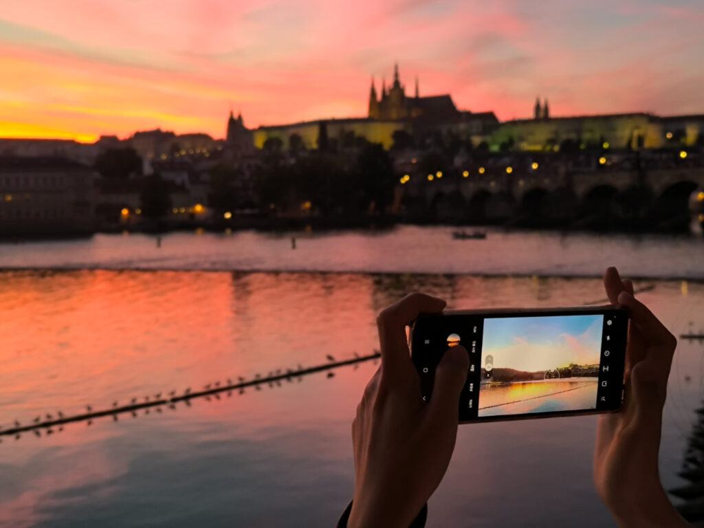Podvečerní pohled na Pražský Hrad – tohle mobil zvládá velmi slušně, byť režim Noc má trochu rezervy ve srovnání s konkurencí. Fotka je bez úprav, stejně jako všechny na této stránce, pouze je zmenšená.