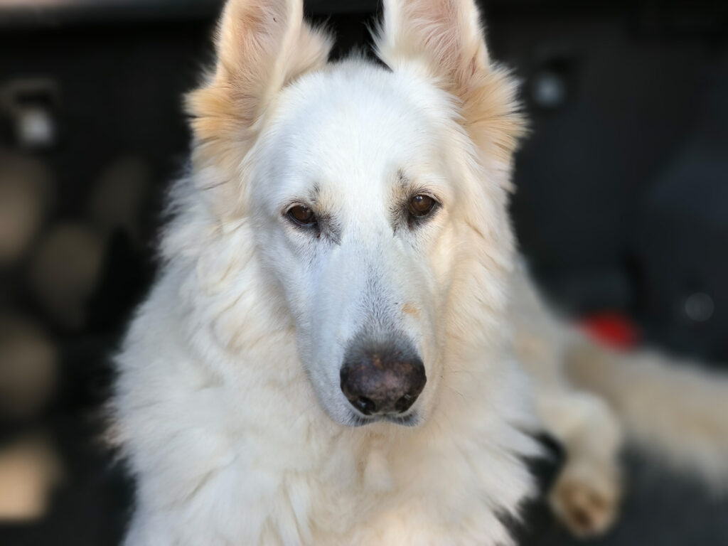 Pes Amba spokojeně čeká, až portrét vznikne… Neupravená, pouze zmenšená fotka, tak jako všechny zde na stránce.