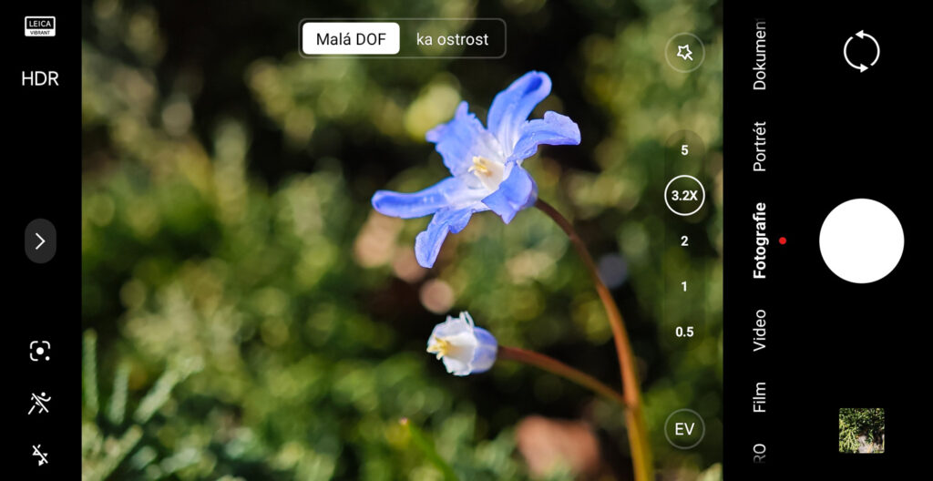 Plus dokonce je při focení možné přímo z nabídky na obrazovce zvolit, zda chceme “Malou DOF”, tedy malou hloubku ostrosti, nebo “rozšířenou”. Jinými slovy – i u tohoto objektivu dokáže trochu regulovat, jak moc či málo je pozadí rozostřené. Ale rychle dodejme, že jde o změnu spíše symbolickou a mnohdy prakticky neviditelnou.