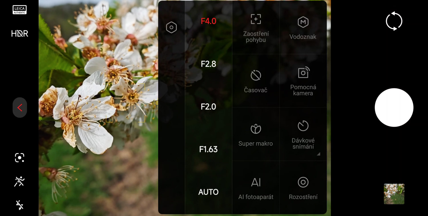 Rychle dodejme, že k pořádnému foťáku má rozsah možného nastavení hodně daleko – clonu je u tohoto fotomobilu možné měnit v rozsahu od hodnot 1.63 do 4. Ale i to stačí pro překvapivě zajímavé efekty.