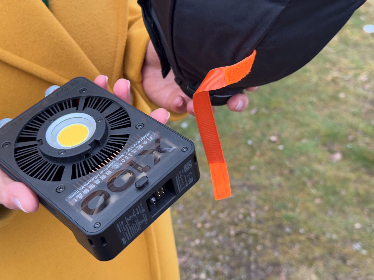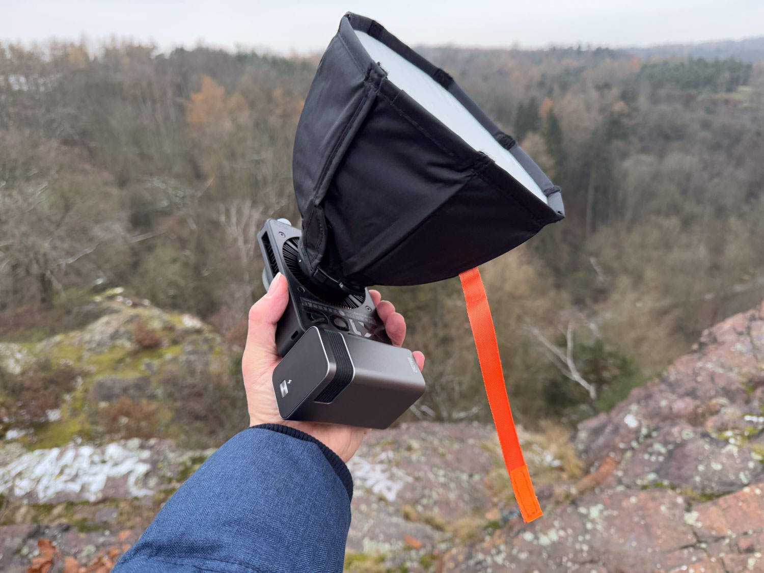 A to vše jde dělat v pohybu, s opravdu skladnou výbavou – světlo je napájené baterií, která slouží zároveň jako grip/držák. Případně jde vše samozřejmě upevnit na stojan a připojit k adaptéru, ale to zrovna pro můj scénář využití není moc zásadní.