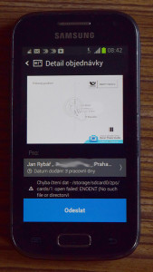 Řečeno ve dvou větách: aplikaci bude třeba ještě vyladit, můj první pokus dopadl neslavně – pohlednici jsem sice vytvořil, Zoner si stáhl peníze, ale pak mi aplikace napsala, „sorry error“ a nešlo nic dělat (viz fotka).