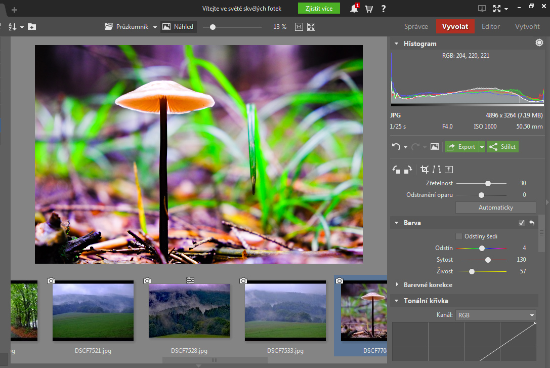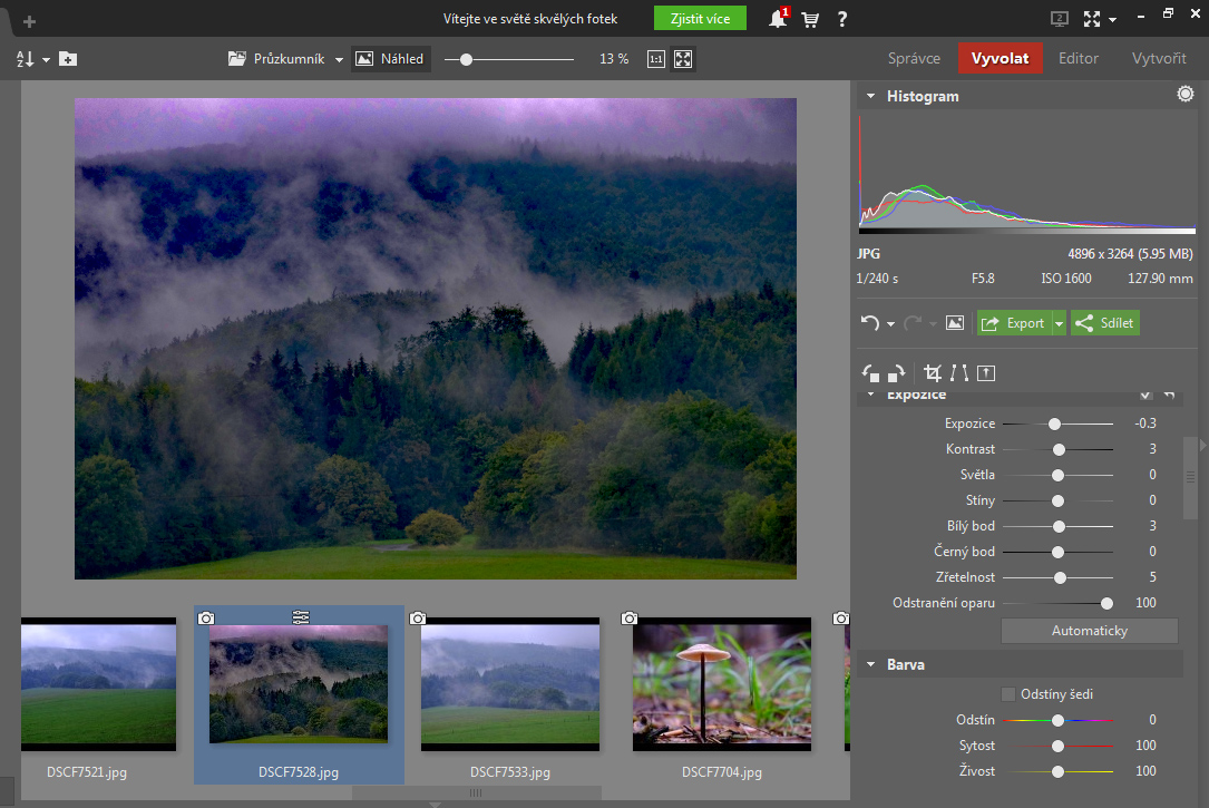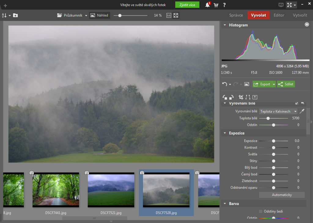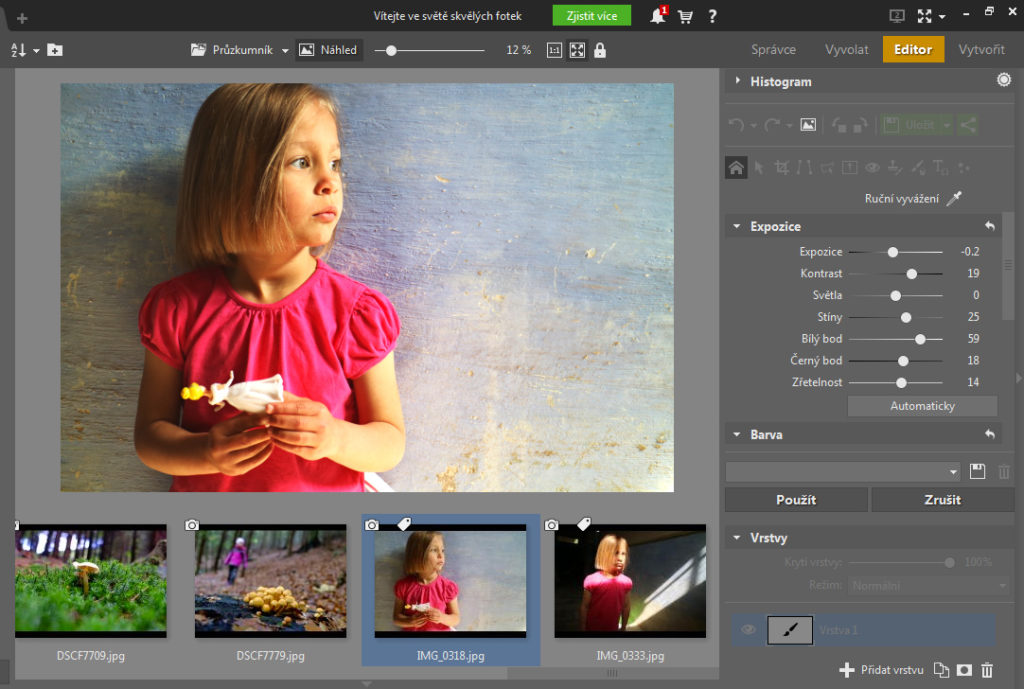 Proč se mi ona část Vyvolat tolik líbí? Nabízí totiž přesně ty úpravy, které stačí v 95 % všech případů pro rychlou úpravu fotek, kdy stačí pohrát si s Expozicí, vytáhnout třeba Světla a přidat trochu černé (zde Černý bod). Moje rada pro začátečníky zní: snažte se nejprve naučit fotky vylepšovat právě zde, a teprve poté se vydejte k dalším úpravám do Editoru.