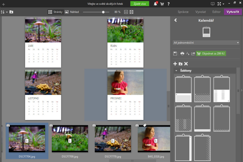Další novinkou, dle mého hodně zásadní, je modul/záložka Vytvořit, která následuje vzor obdobných funkcionalit například v Lightroomu. Díky ní je možné velmi jednoduše několika kliky vytvořit různé verze kalendáře, fotoknihy atp…