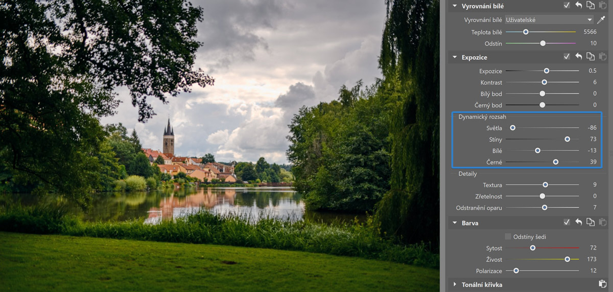 Vylepšení se s podzimní aktualizací dočkaly také Světla a Stíny, které nyní uživatelé upraví s daleko lepším výsledkem. Ze stínů tak dostanou víc detailů, aniž by hrozilo nepěkné vyblednutí barev. Fotograf se nemusí obávat ani výraznějších úprav, zapracovali jsme na odstranění nežádoucích obrazových artefaktů. Jednotlivé parametry navíc nyní daleko lépe spolupracují. Světla a Stíny při použití například s Expozicí podávají výrazně lepší výsledky než konkurenční programy.